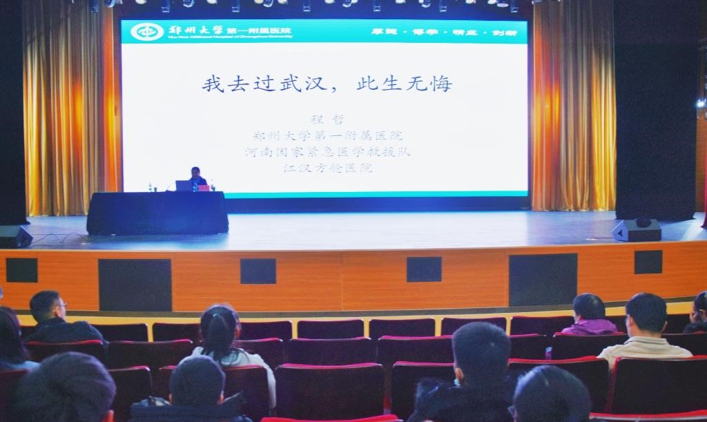 12月8日,我校特邀郑州大学第一附属医院呼吸内五科主任、2020年驰援武汉河南国家紧急医学救援队医疗组组长程哲来校,作题为《我去过武汉 此生无悔》的抗疫精神主题报告,材料学院师生300余人听取了报告会。