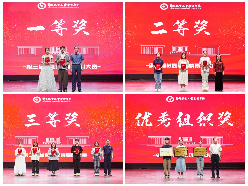 经过激烈角逐,民航学院《小星星》、航空发动机学院《情绪仙途:寻找内心的力量》获一等奖,民航学院《你本向阳》、土木与环境学院《苒苒星芒》、航空宇航学院《避光者的救赎》获二等奖,电子信息学院《镜听心语》、蓝天书院《网瘾我差点就信了》、材料学院《逐梦青羽》、机械工程学院《摘下面具》、经济学院《破茧成蝶》获三等奖。航空发动机学院、民航学院、土木与环境学院获优秀组织奖。