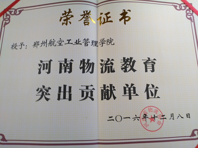 我校荣获“河南物流教育突出贡献单位” 时间:2016年12月13日 作者: 编辑: 点击: 12月7-8日,河南省第一届物流业大会暨河南省物流协会2016年年会隆重举行,会议表彰了河南省优秀物流企业以及先进教育单位。我校获“河南物流教育突出贡献单位”荣誉称号。 本次大会以“创新、创造、共赢、发展”为主题,河南省人民政府副省长赵建才以及在豫的国内重点知名物流企业参加。 会议同期发布了2016河南省物流业发展报告;中国物流与采购联合会常务副会长丁俊发、中国物流学会副会长张晓东对河南省物流业发展作了深刻解读;传化物流集团高级副总裁李绍波作“公路港网络塑造行业新生态”的主题演讲。 “‘河南物流教育突出贡献单位’这项殊荣是对我校物流专业教育成果的肯定,物流学院将继续围绕河南省‘物流兴省’的发展战略,为促进河南省物流业的健康快速发展尽自己的一份力量。”物流学院副院长王国保说。(物流学院付赟) 2016年12月13日 新闻头条 上一条:我校召开2016年度基层党组织书记抓党建工作述职评议会议 下一条:我校召开纪念郑州航院关工委成立30周年座谈会 【关闭】