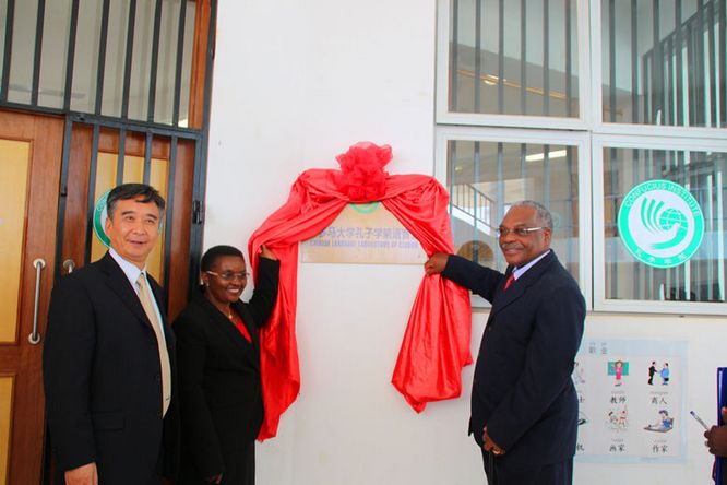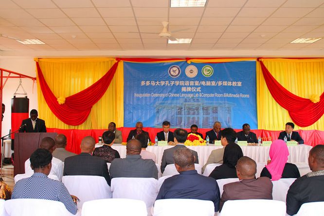坦桑尼亚当地时间6月22日上午,郑航—多多马大学孔子学院语音室、电脑室及多媒体教室揭牌仪式隆重举行。坦桑尼亚教育部副部长Manyanya、郑州航院党委书记梁晓夏、多多马大学校长Kikula出席揭牌仪式并发表重要讲话,共同为语音室、电脑室和多媒体教室剪彩揭牌。揭牌仪式由孔子学院外方院长Ajali主持。