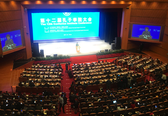 12月12日,我校副院长杨培、国际合作与交流处处长杨欣欣作为中方合作院校代表参加第十二届全球孔子学院大会。