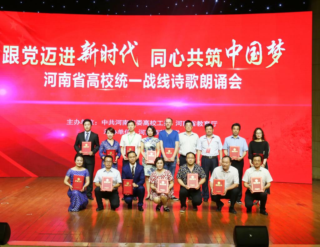 6月2日,由省委高校工委、省教育厅主办,河南师范大学承办的全省高校统一战线诗歌朗诵会决赛在河南师范大学举行。由我校外国语学院法语教研室教师组成的参赛队与来自全省29所本科院校的41支参赛队选手同场竞技,最终摘得二等奖。