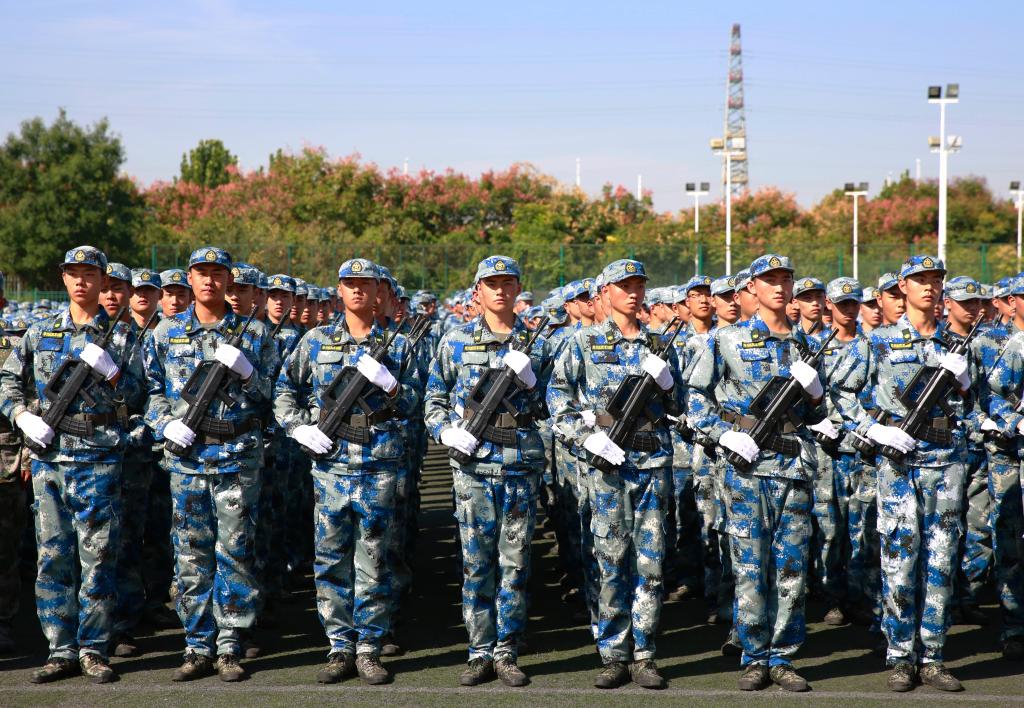由6000余名新生戎装列队、英姿飒爽,依次走过主席台接受检阅。今年的挎枪方阵格外引人注目,99名来自民航学院的新生挎枪走过主席台,挺拔的身姿、矫健的步伐无不展现身为郑航学子的自信和魄力。