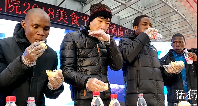 几位外国留学生一边品尝着展示的美食,一边竖起大拇指频频点赞:“好吃!得劲!”
