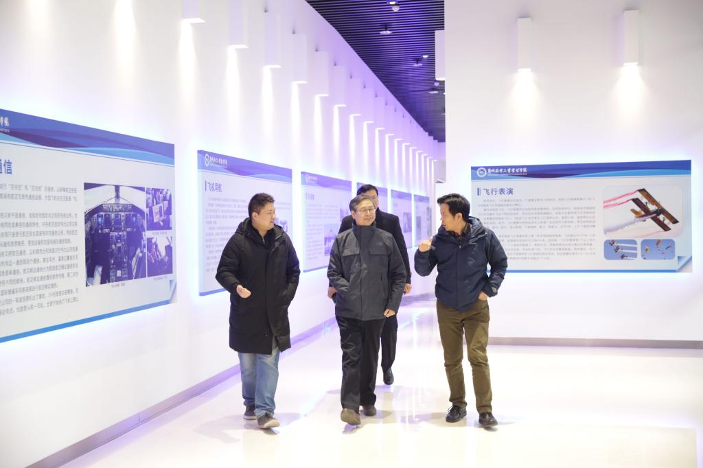 会后,陈学军一行实地考察了我校虚拟仿真中心、航空文化馆和郑航众创空间。