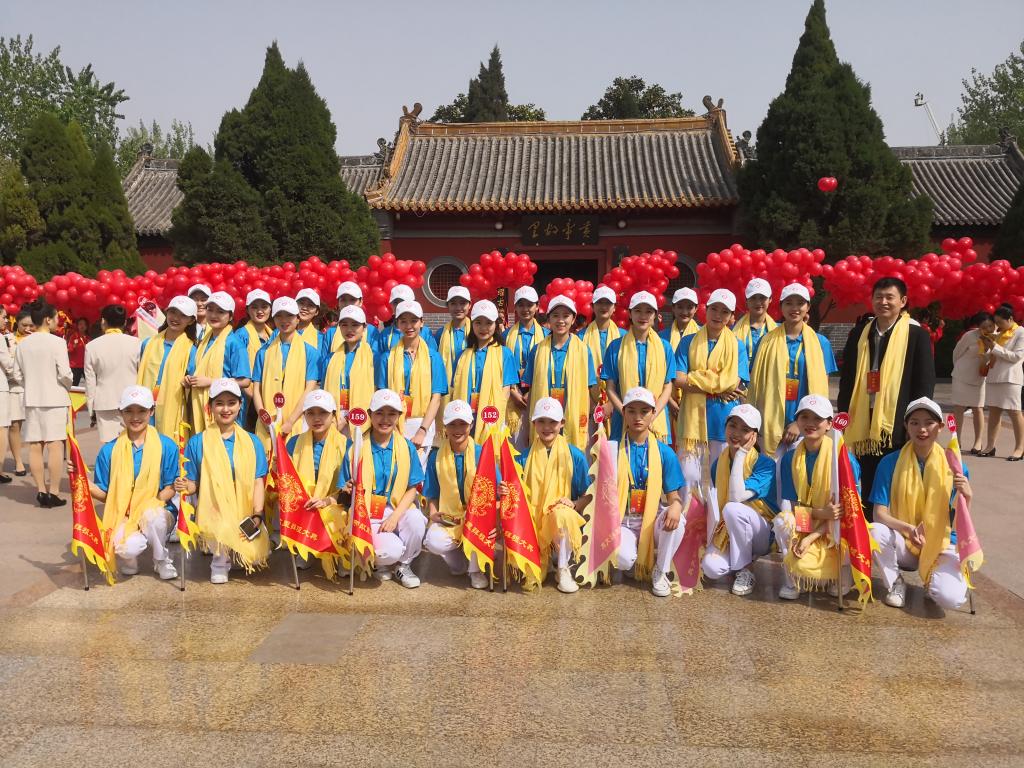 拜祖大典活动当日,黄帝故里园区春意盎然,一曲《我和我的祖国》在园区内外唱响。身着统一着装,佩戴黄色丝巾,手持红色锦旗的“醉美民航”文明礼仪志愿服务队员在大典现场尤为醒目。