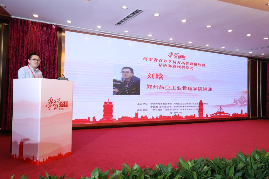 10月31日,“学习强国”河南省百万学员万场答题挑战赛总决赛暨颁奖仪式举行,来自全省各地100余名“学习达人”展开了一场激烈的“知识对决”。我校发展规划处刘晗、文法学院计宁代表学校和省委高校工委参加决赛,并分别荣获三等奖和优秀奖。