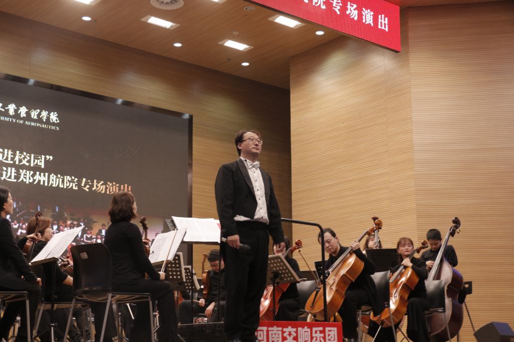 11月5日,“高雅艺术进校园”河南交响乐团2019走进郑州航院专场音乐会举行,副院长张锐出席音乐会。