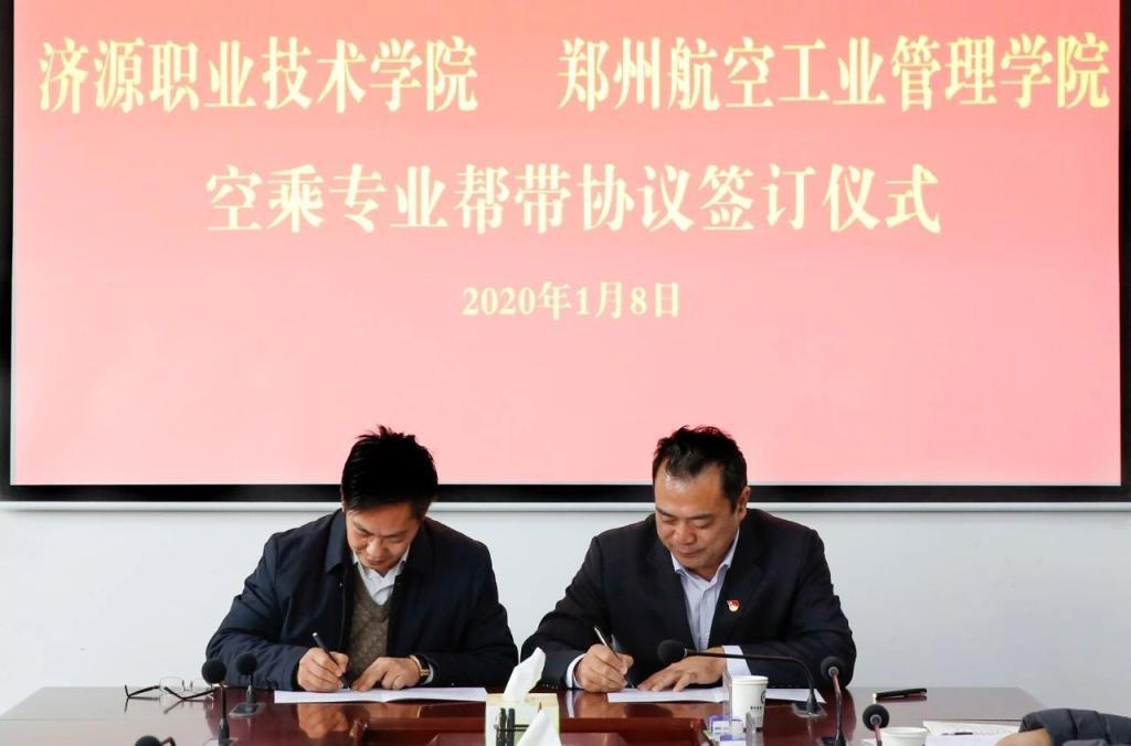 1月8日,我校与济源职业技术学院共建“空中乘务专业盟院交流生试点班”签约仪式举行。
