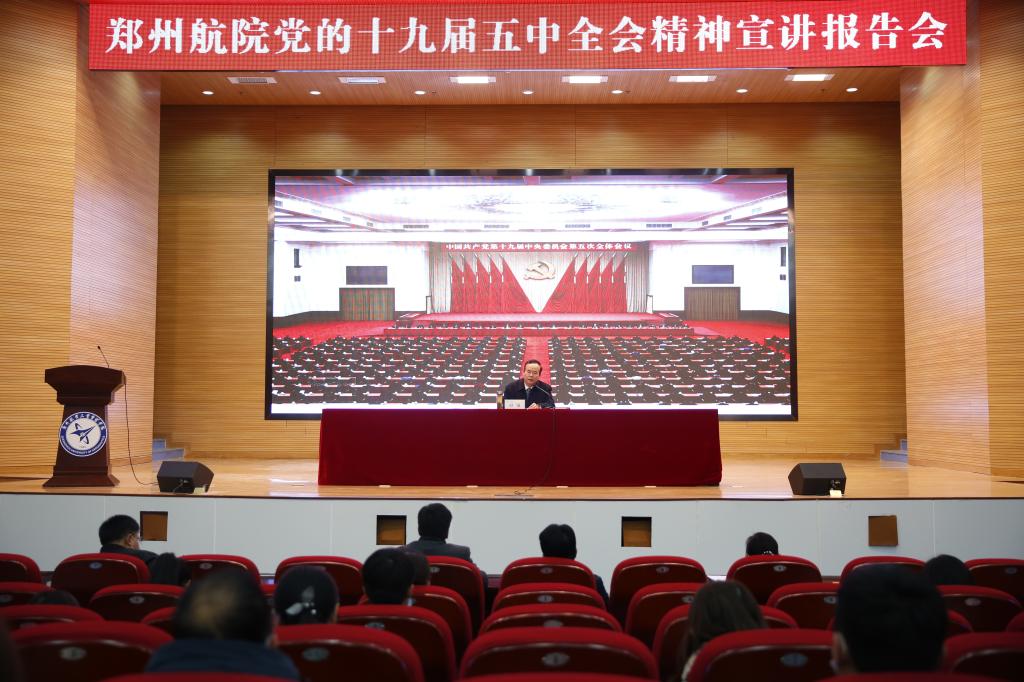 当日,院长李勇为航空工程学院师生宣讲党的十九届五中全会精神。李勇指出,党的十九届五中全会,是党在我国全面建成小康社会的第一个百年奋斗目标即将如期实现、全面建设社会主义现代化国家新征程即将开启的重要历史背景下,召开的一次十分重要的会议,具有划时代意义。他详细阐述了党的十九届五中全会的重要意义、深刻解读了全会审议通过的《中共中央关于制定国民经济和社会发展第十四个五年规划和二〇三五年远景目标的建议》。
