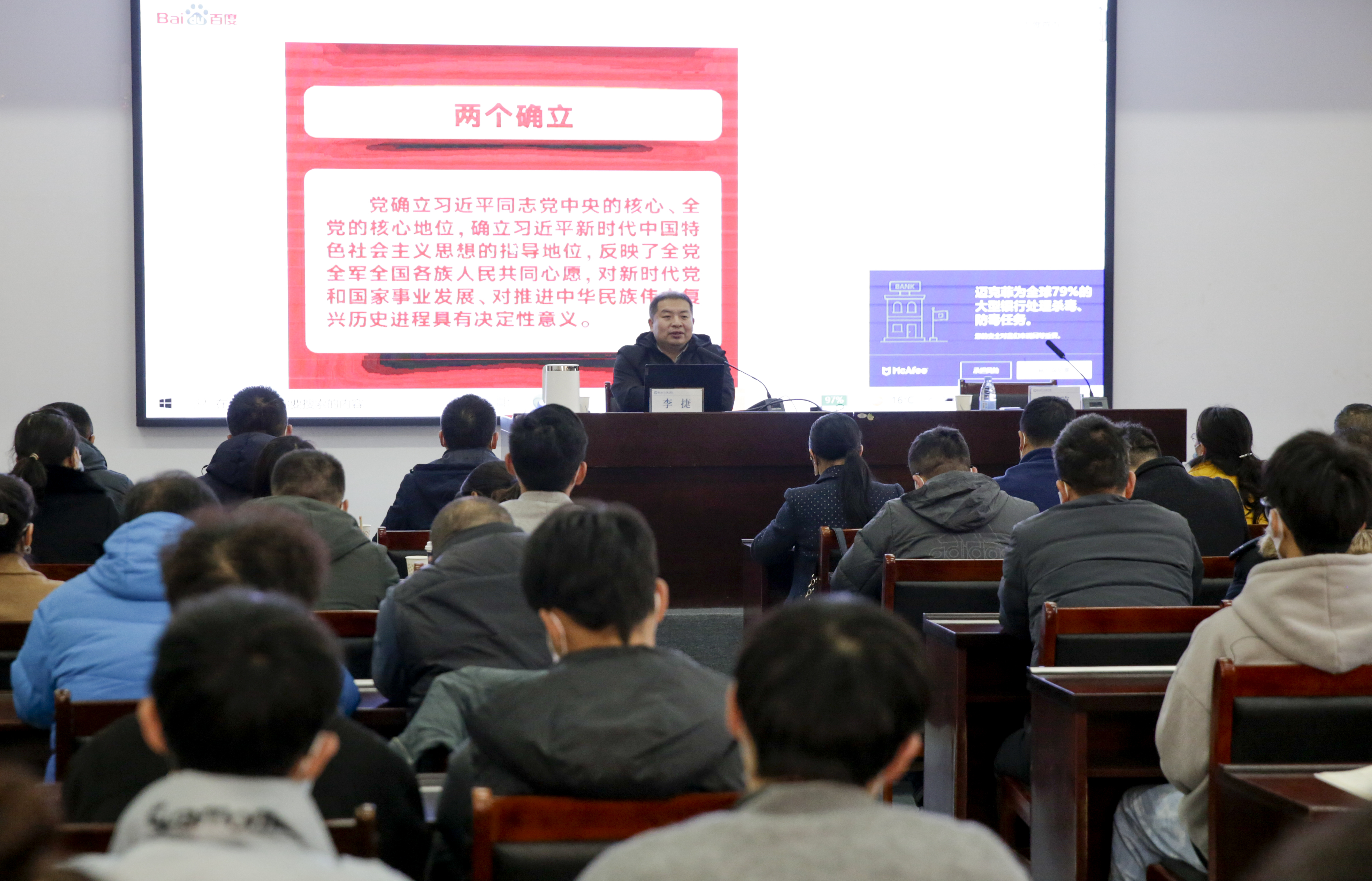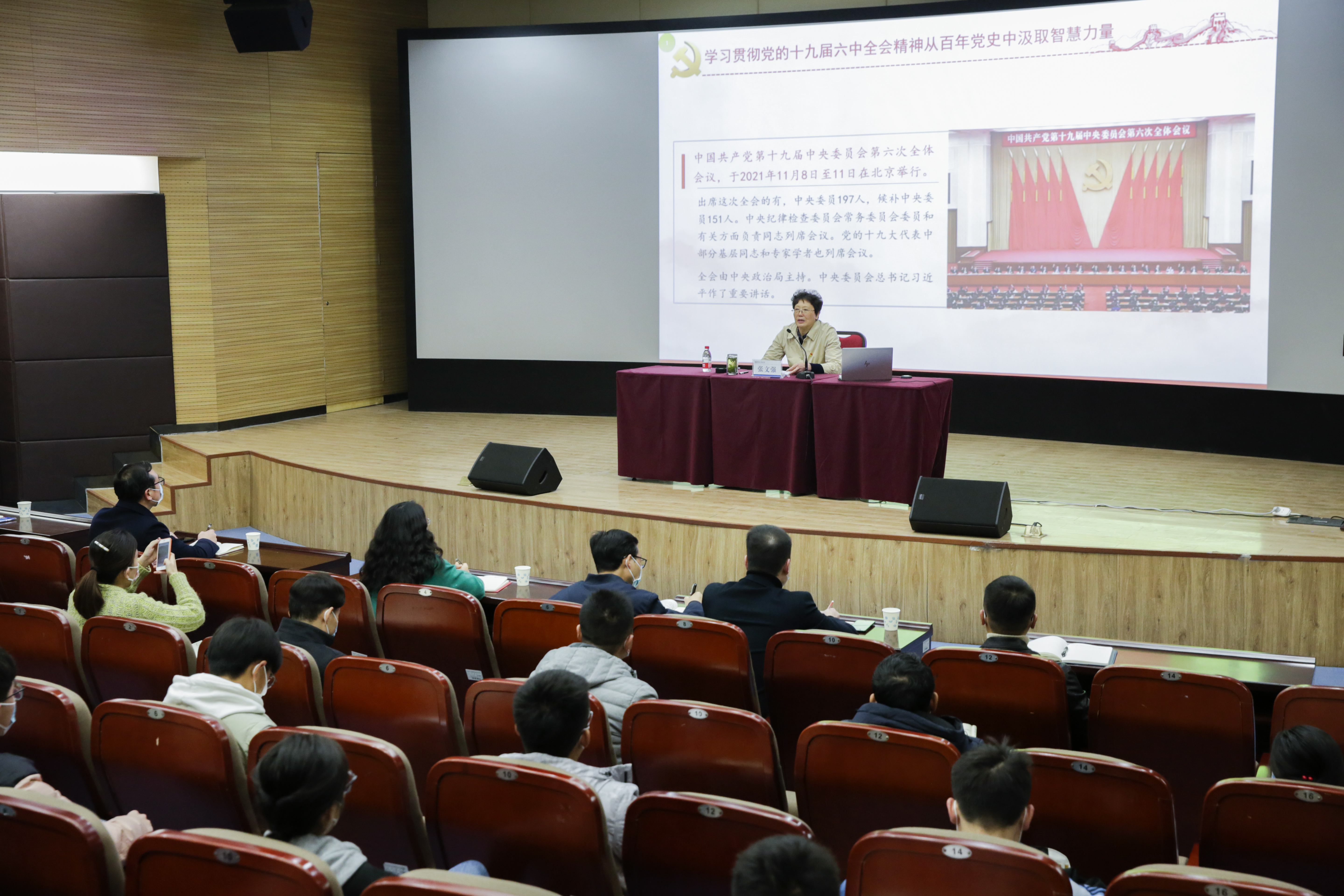 12月9日,党委副书记、工会主席杨培带领师生学习了十九届六中全会的主要内容,总结了党的百年奋斗成就与历史经验,对党的十九届六中全会精神作了系统性阐述。