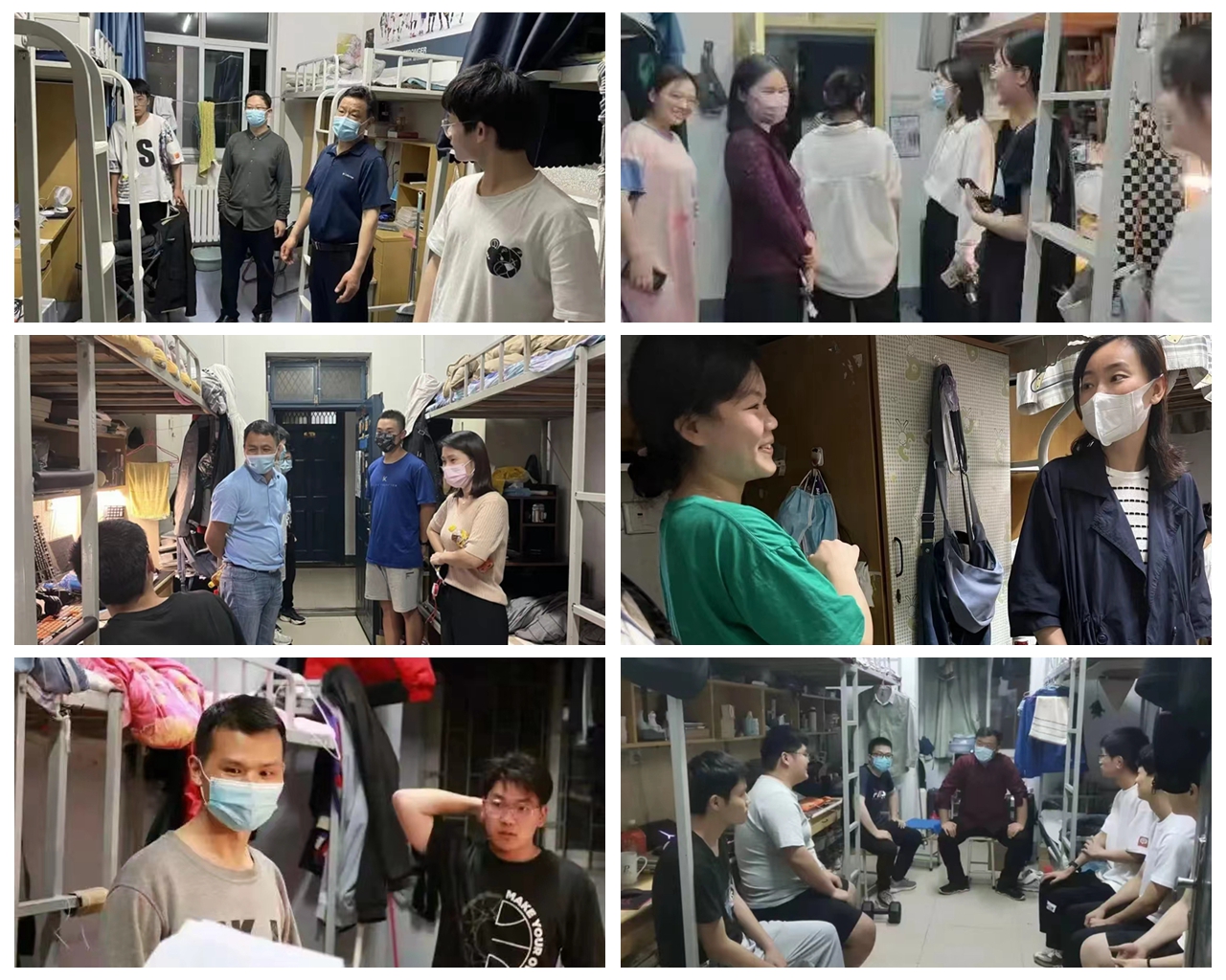 “同学们,请放心,我们一直都在!”学工队伍积极响应号召,与学生同吃同住,坚守一线:他们召开线上疫情防控专题会议,及时向学生传达当前的防疫形势和学校疫情防控政策;他们深入学生宿舍,与学生亲切交谈,了解、关心学生学习生活状况和心理状况,争做学生健康安全的守护者,有力保障了校园封闭式管理期间的学生管理、应急处置等工作正常运转。