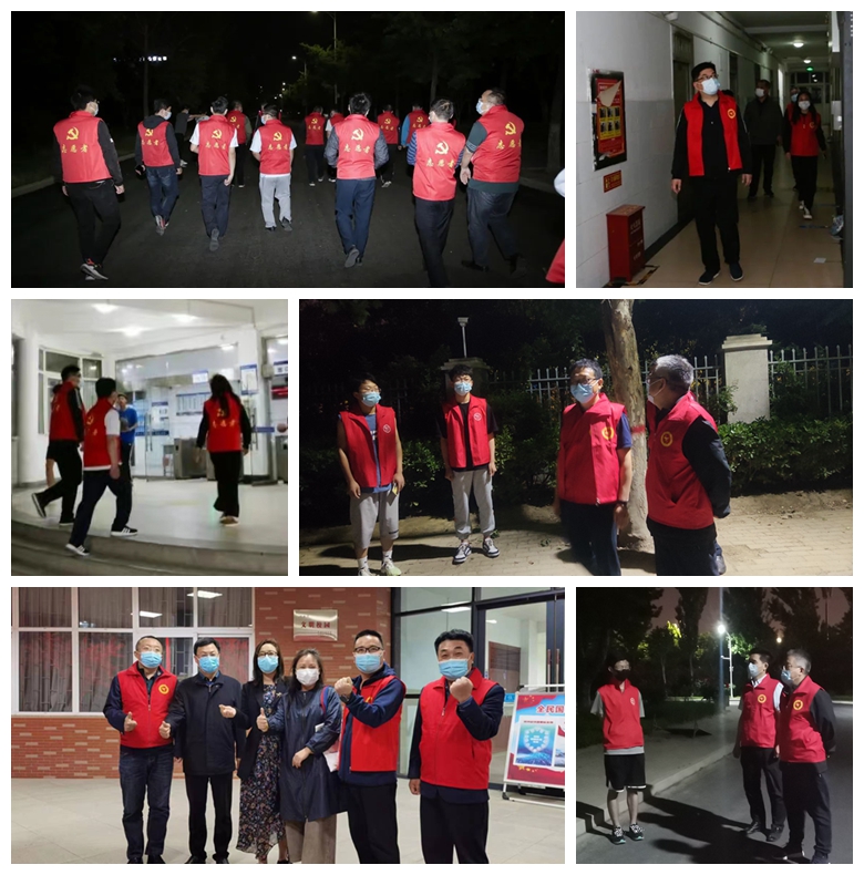 “同志们,今晚8点继续在综合楼下集合。”机关党委组织机关留守校区的党员干部成立疫情防控志愿巡逻队,每晚准时集合报到,分组分时段,针对校内疫情防控重点场所开展常态化巡防巡查。他们身穿红马甲,穿梭在校园的关键卡点,是夜幕下、校园里,最鲜艳的一抹红。