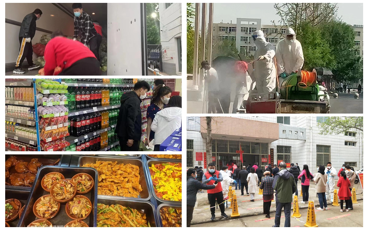像刘勇一样,无数后勤人在全力奋战、默默付出。他们做好办公楼、教学楼、学生宿舍、食堂、超市等场所的清洁和消杀工作;他们对接属地有关部门,安排好核酸检测工作,做好医务人员调配、场地、餐饮等核酸检测中的相关服务保障;他们针对家属区防控力量相对薄弱的实际情况,组织党员干部到两个家属区轮班,配合属地相关单位做好物资供应、核酸检测、出入口管控等工作……