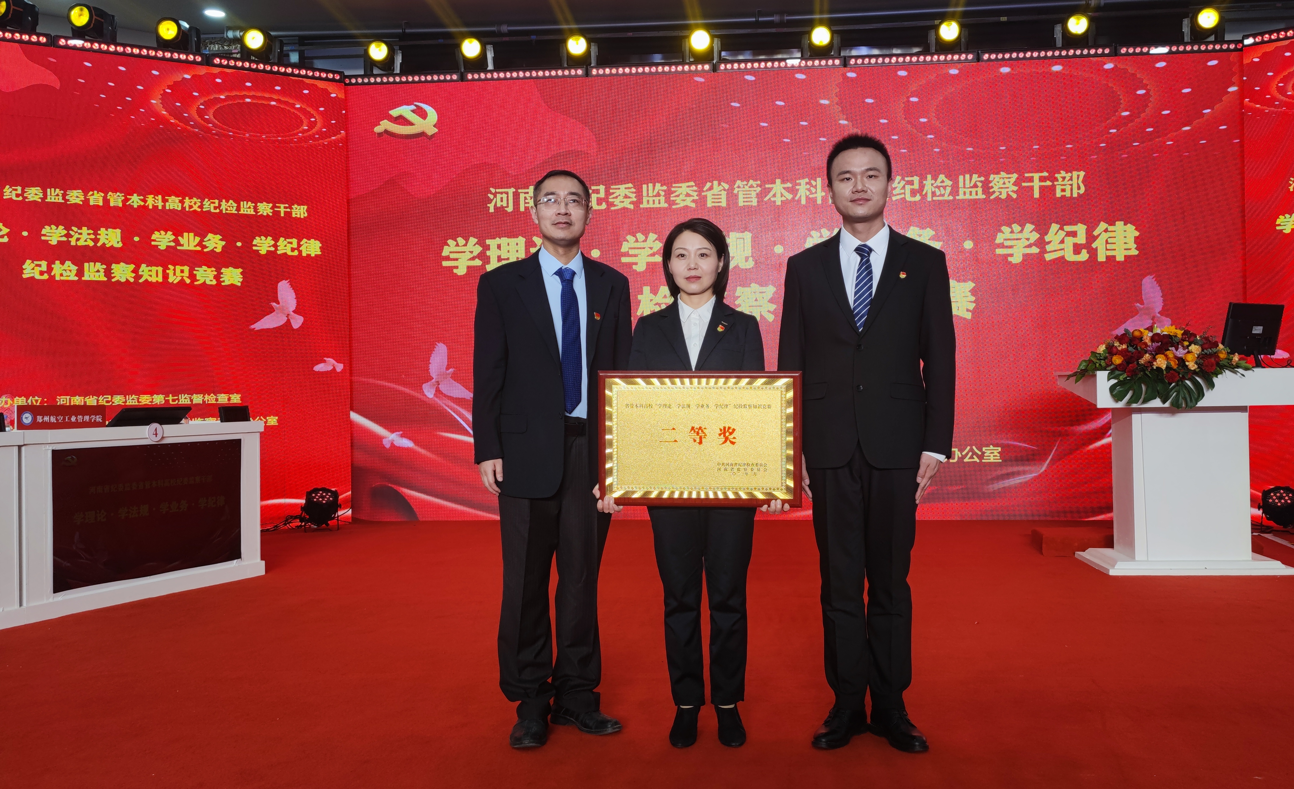 3月17日,省纪委监委省管本科高校纪检监察干部“学理论、学法规、学业务、学纪律”纪检监察知识竞赛决赛在华北水利水电大学龙子湖校区举行。校纪委书记监察专员张文强带队参加比赛,我校以总分第二名的优异成绩荣获二等奖。