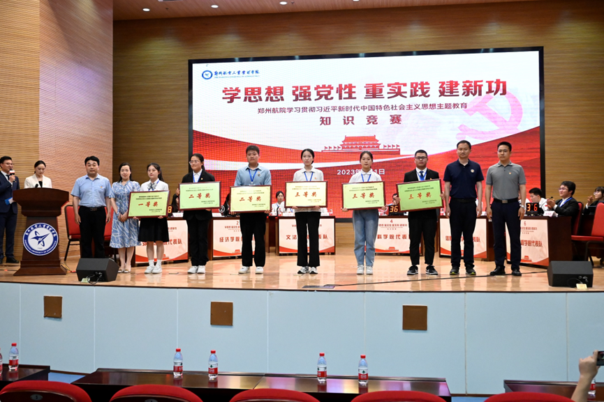 我校举办学习贯彻习近平新时代中国特色社会主义思想主题教育知识竞赛决赛 时间:2023年06月02日 作者:组织部 孙罗卡文 编辑:党委宣传部(新闻中心)邓彦雯 点击: 6月1日,我校举办学习贯彻习近平新时代中国特色社会主义思想主题教育知识竞赛决赛。 决赛现场,六支参赛队伍经过“有问必答”“争分夺秒”“抢答题”和“线索题”四个环节的激烈角逐,最终,外国语学院代表队获一等奖,管理工程学院、材料学院代表队获二等奖,经济学院、信息管理学院和文法学院代表队获三等奖。 本次决赛旨在深入学习贯彻党的二十大精神,不断推动学习贯彻习近平新时代中国特色社会主义思想主题教育走深走实,确保主题教育活动取得实效。 此次决赛由组织部、学工部、校团委主办,管理工程学院协办。组织部、学工部、校团委主要负责人,部分学院党委书记、副书记,以及400余名学生党员代表参加此次活动。 2023年06月02日 新闻头条 上一条:我校召开新一轮本科教育教学审核评估工作会议 下一条:校长刘代军一行调研沈阳航空航天大学和沈阳飞机工业集团 【关闭】