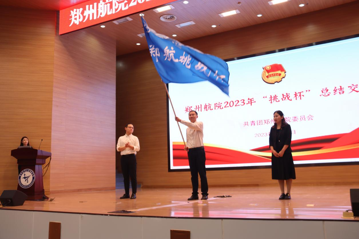 会议还对新一届“挑战杯”大赛进行说明与培训。大会进行承办学院“郑航挑战杯”赛会旗帜交接,新一届大赛全面展开。