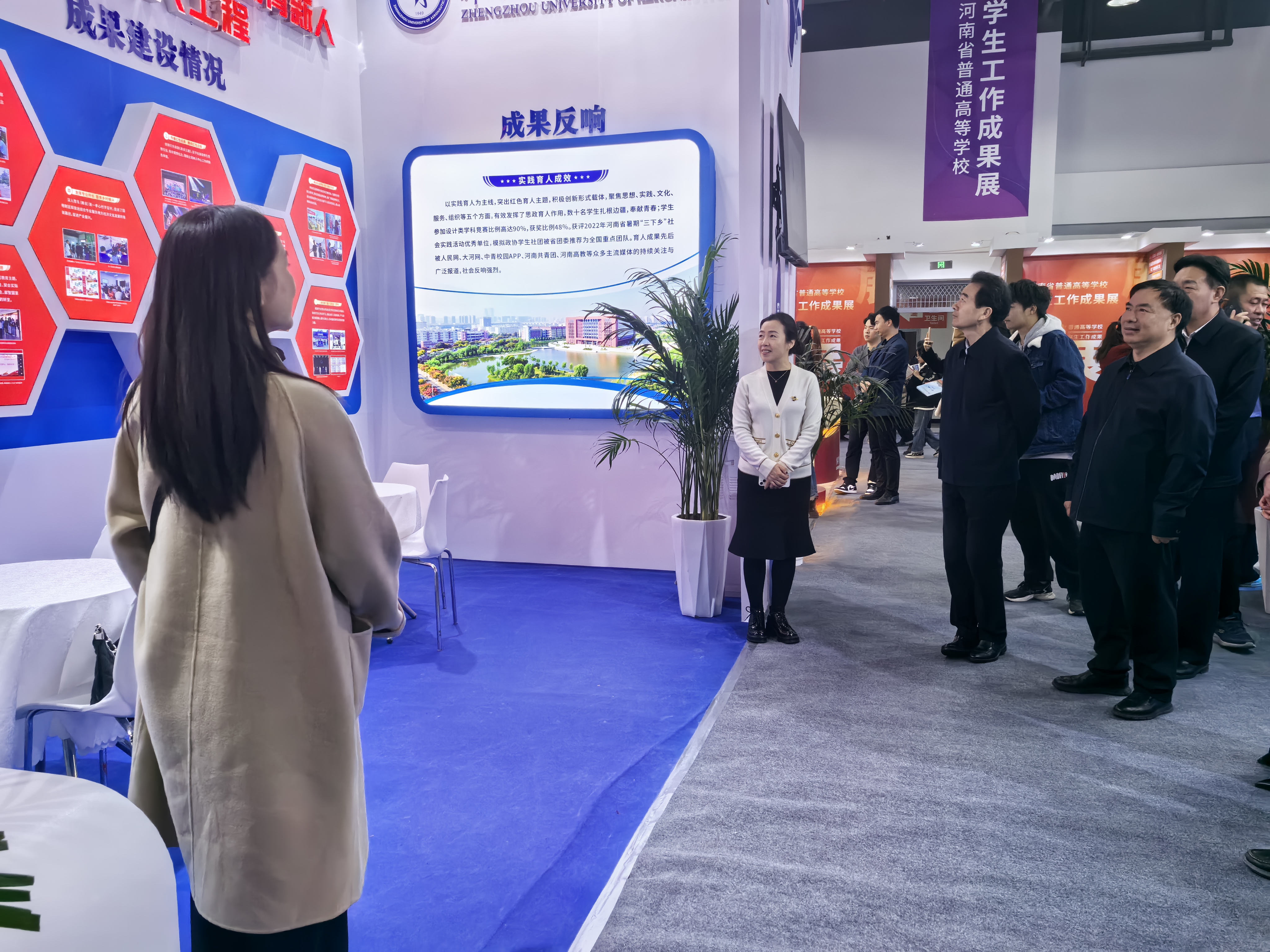参展过程中,吕冰详细了解了我校项目《以“艺”报国传薪火,以“红”为底育新人——“八维”实践育人工程》,听取了项目特色做法和育人成效的介绍,并对我校学生工作给予高度认可。