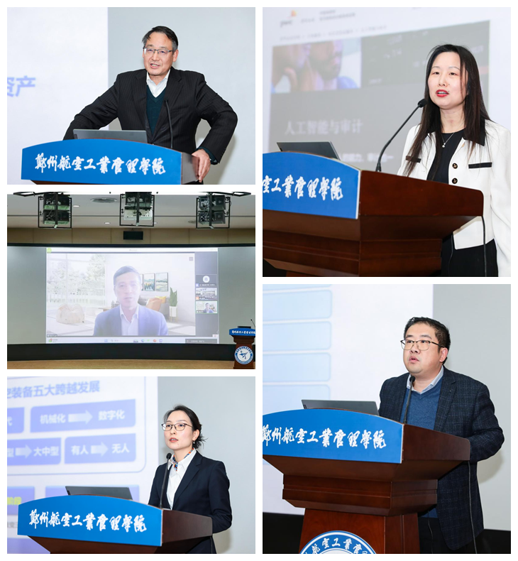 教育部长江学者特聘教授、财政部会计名家、全国会计专业学位研究生教育指导委员会副主任、北京大学陆正飞教授,财政部会计名家、全国会计专业学位研究生教育指导委员会顾问、西安交通大学张俊瑞教授,中航光电科技股份有限公司总会计师、董事会秘书王亚歌,南京审计大学陈素云教授,我校商学院副院长周雪峰教授分别作题为“环境变化与会计人才培养”“数据资产会计、财务研究与人才培养”“建设世界一流数智财经体系,助力国之航空重器翱翔蓝天”“数智化对审计研究的影响”“企业ESG表现的同群效应研究——基于数据要素集聚视角”的主题报告。
