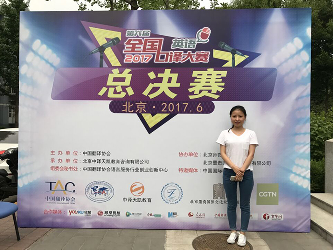 “一路走来,从郑州到北京,两个多月,三场比赛,其间种种难以言说,我只想感谢所有鼓励我的人。没有你们,我从来不知道我可以走到这里,我可以变成现在的自己。”这是全国口译大赛(英语)总决赛三等奖获得者刘全霞比赛结束后,在自己的微信朋友圈中写下的一段话。