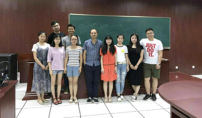 王中心(右五)、李静(右四)老师和刘全霞(右二)及第一届口译队成员