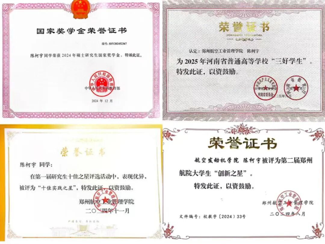 陈柯宇,航空发动机学院2023级硕士研究生。他政治立场坚定,思想积极进步。担任研究生党支部委员期间,多次组织研究生党员举办主题党日活动,将专业知识融入党员活动中,为支部发展注入科技活力。积极响应党中央号召,参与团中央关爱行动“七彩假期”、“少年儿童安全守护计划”等志愿服务项目,荣获河南青年志愿服务项目大赛优秀项目奖。致力于开展航空科普讲座,覆盖中小学生千余人次,以实际行动诠释了党员的奉献精神。