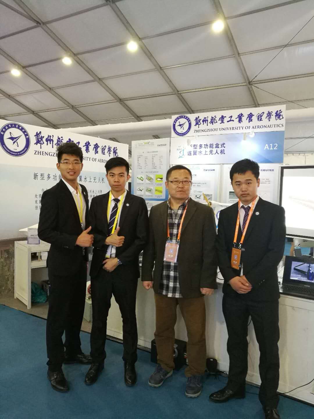 适时,恰得知“互联网+”大学生创新创业大赛与“挑战杯”全国大学生课外学术科技作品竞赛开赛在即。刘战合与创新实验室便将之视为团队科创成果的公开首秀而报名参赛。日程紧张,参赛的竞赛方案也只是简单处理后的改版科研方案。但让他们未曾料想到的是,凭借着先进的设计理念和极强的应用潜力,水上无人机项目不但在两大赛事的校、省两级中连战连捷,更是双双闯进了国赛圈,最终在决赛平台上取得了第三届中国“互联网+”大学生创新创业大赛铜奖和2017年挑战杯三等奖的好成绩。