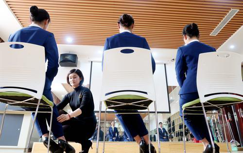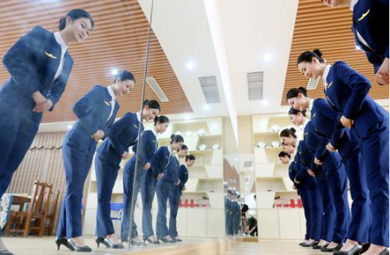 换上制服、挽起长发、化好淡妆,14时10分许,郑州航空工业管理学院民航学院大一女生王一贺拎上书包走出寝室,想起即将开始的第5次礼仪课,嘴角不禁微微上扬,“虽然辛苦,可它依然是我心中最精彩的课堂啊。”王一贺读的是空乘专业,化妆、形体、礼仪都是专业必修课。