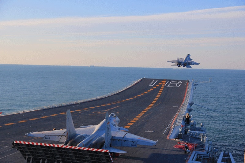 16、15、14,这几个看似平凡无奇的数字,却隐藏着打开歼15档案的“密码”——伴随着震耳欲聋的轰鸣声,舷号16的辽宁舰上起飞偏流板升起,代号“飞鲨”的歼15飞机宛若离弦之箭,迅速通过14°的舰艏甲板滑跃起飞,直指苍穹,成就了那一个经典的画面。