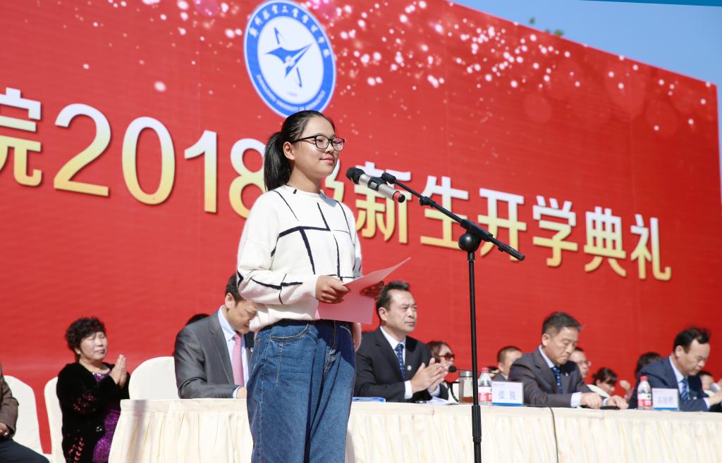 典礼上,2018级陈雨露作为新生代表发言。同学少年,风华正茂,大学是人生的重要阶段,陈雨露愿大家适应大学生活、树立学习目标,秉承郑航“严谨、求实、开拓、进取”的校训,抓住机遇,迎接挑战,在知识的曙光下追赶时代的光辉。