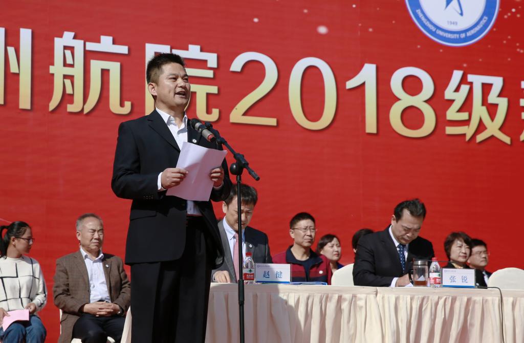 院长李勇作题为《让大学人生新征程更加出彩》的演讲。李勇表示,郑航将把学生和家长的理解支持转化为动力,加大南校区投入,呈现更加美好的郑州航院。李勇说,从今天起,新生将会感知郑航、品味郑航、绽放郑航,与郑航结下“一世情缘”。回顾郑航69年的办学历史,全体郑航人不忘初心、自强不息、砥砺耕耘,为建成河南省高水平特色骨干大学努力奋斗。李勇希望,2018级新生作为新的郑航人,珍惜时光、接连奋斗,为郑航建设发展增彩添彩,使自己的大学人生新征程更加出彩:要志存高远,脚踏实地,创造精彩人生;要勤奋学习,增长才干,适应快速发展的社会变化;要勇敢担当,牢记使命,奋力拼搏,担当作为。