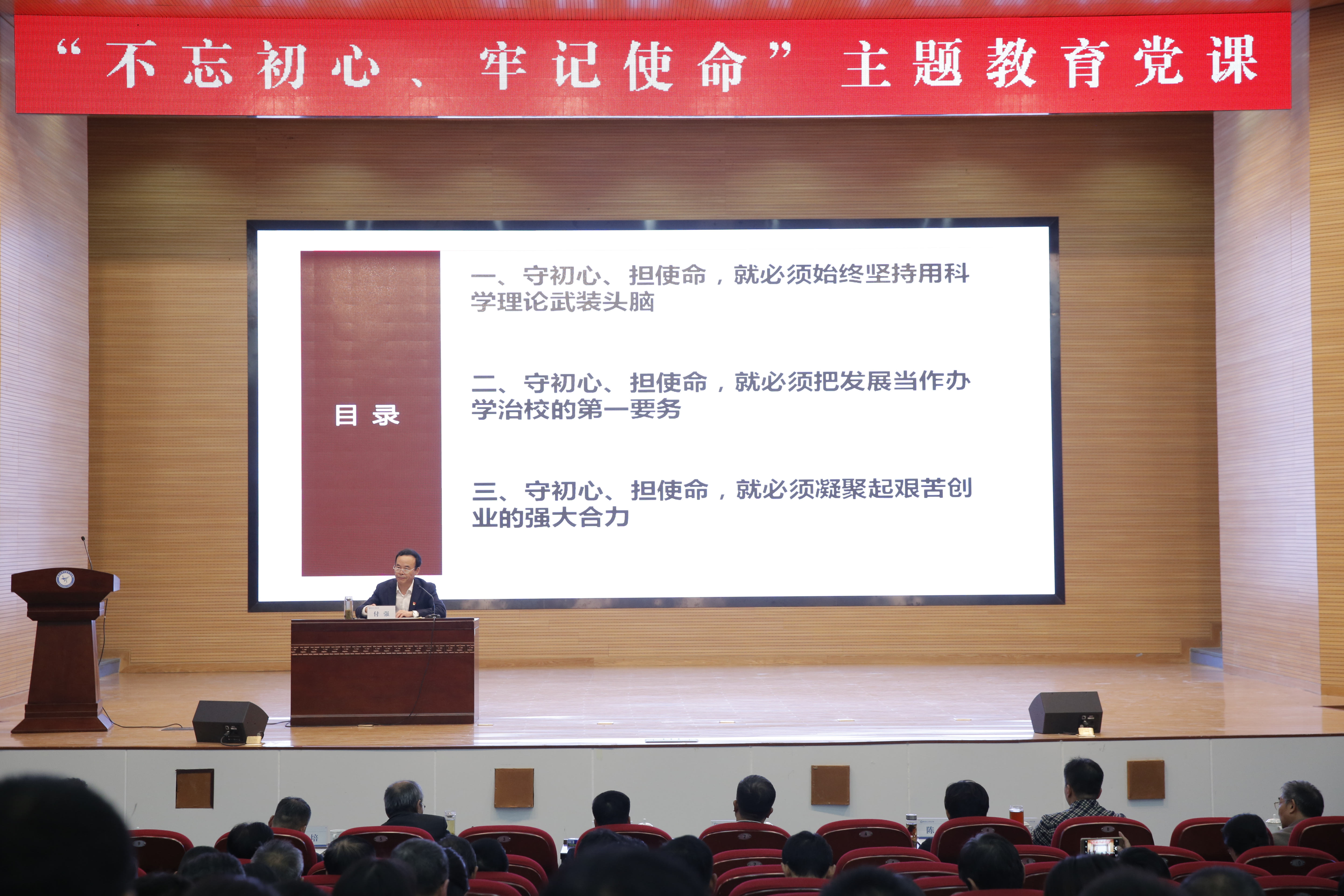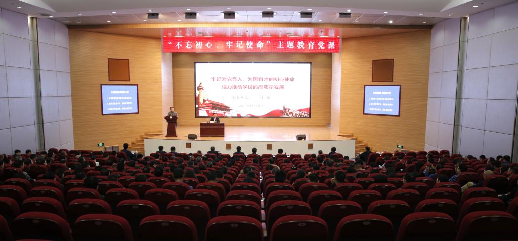 按照“不忘初心、牢记使命”主题教育部署安排,10月12日下午,党委书记付强以“牢记为党育人、为国育才初心使命,强力推动学校高质量发展”为题,为学校处级以上干部、机关科级干部讲主题教育专题党课。付强强调,全校教职工,尤其是校处两级干部要学深悟透习近平总书记关于办好教育的新理念、新思想和新战略,振奋精神、抢抓机遇,把学的氛围干的气氛严的气氛立起来,强化内涵建设,提升核心竞争力,实现学校既定发展目标。