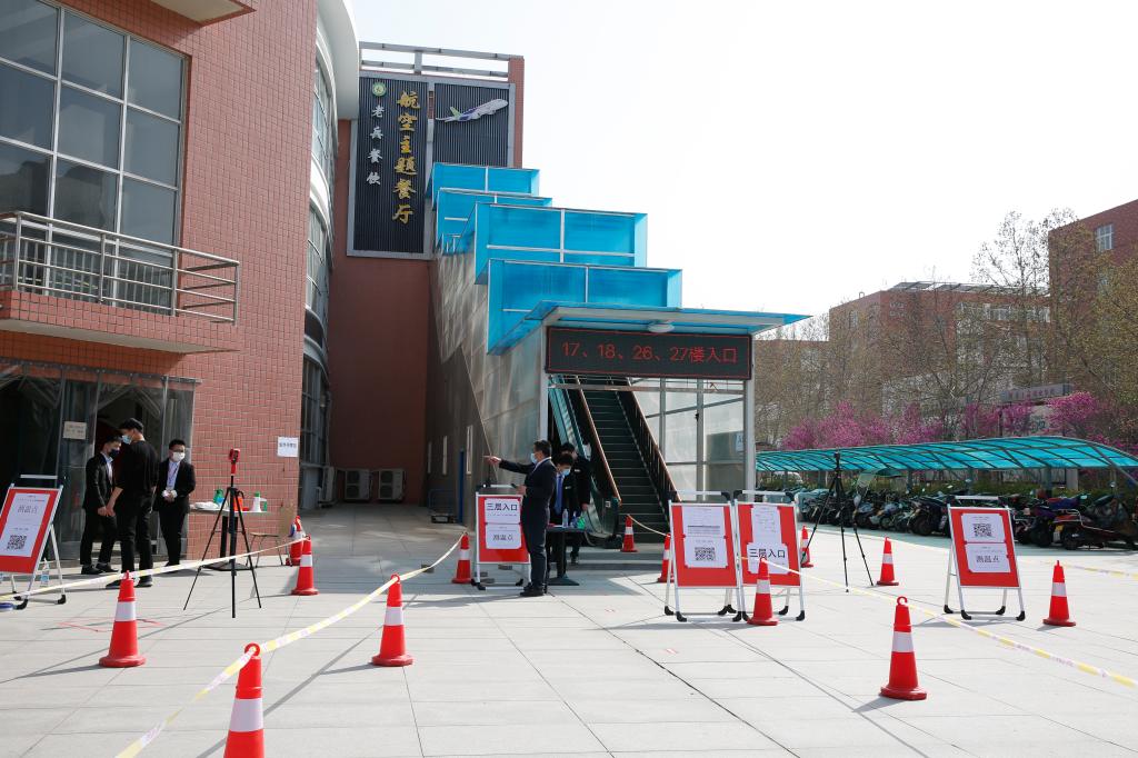 针对“返校后”的疫情防控工作,学校以“网格化、小单元”为原则,建立了以宿舍为单位,包括宿舍楼宇、宿舍楼层和学生寝室在内的三级“网格化”管理体系。两校区的“返校复学后”场景演练,实战模拟网格化管理模式,特别是“错峰取餐”和突发事件应急处置全流程。