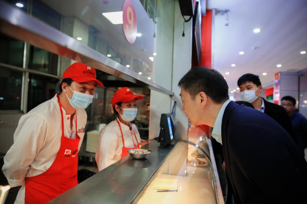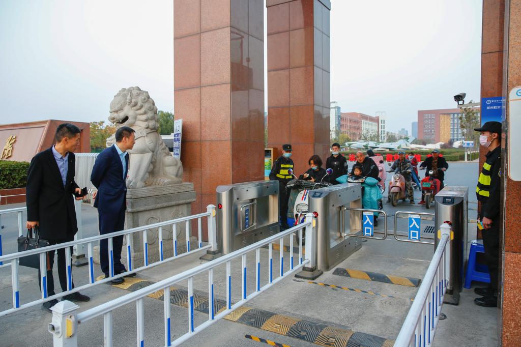 11月10日,副院长赵健先后来到龙子湖校区西大门、学生宿舍、东苑餐厅、家属区等地,检查指导疫情防控工作。