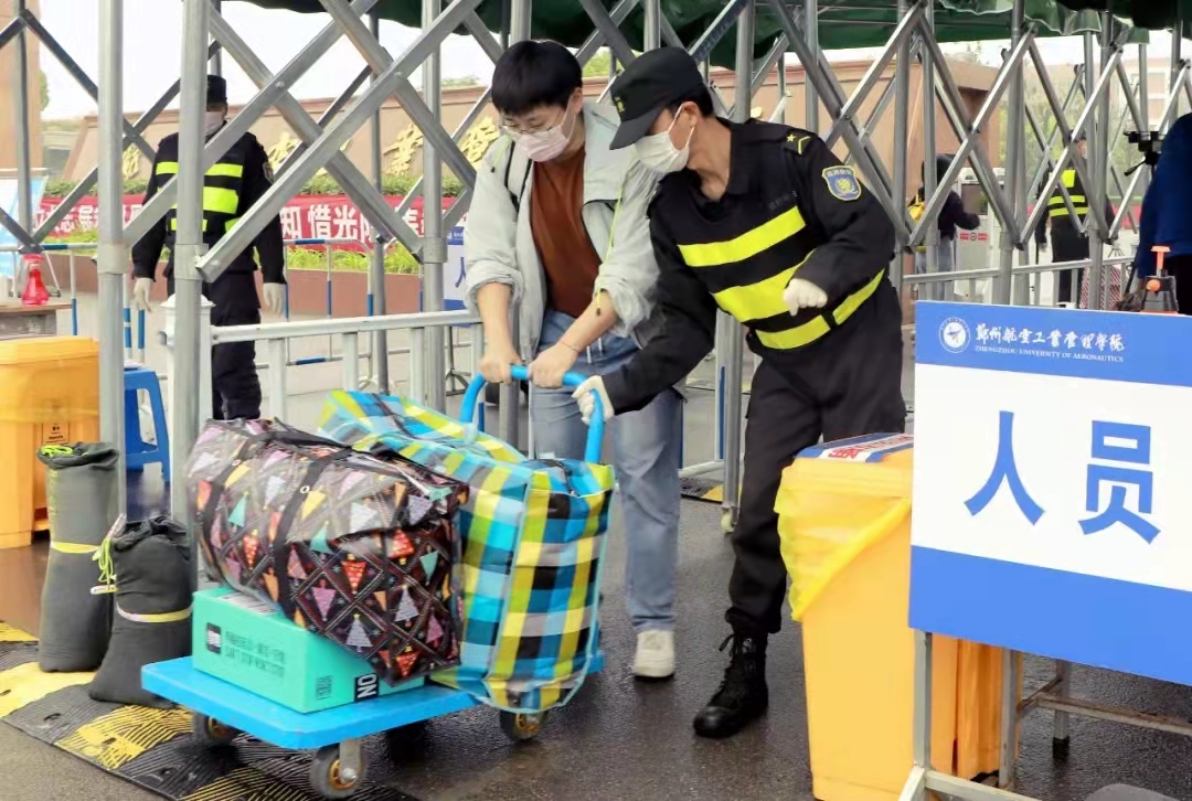 据了解,为确保“平安开学 开学平安”,学校做大量细致周密的部署。返校前,学生线上提交48小时核酸检测阴性证明、返校承诺书和疫苗接种证明,等待学院审批完毕,学生即可返校。学生进入校门时,严格按照一消二查三测的原则,行李消毒、扫码查验、更换口罩、手部消毒、检测体温,符合条件后进入校园。根据《郑州航院全员核酸检测工作方案》,10月10日到15日,分布在龙子湖校区和大学路校区的全体返校学生、在岗教职工和务工人员分期分批进行全员核酸检测。