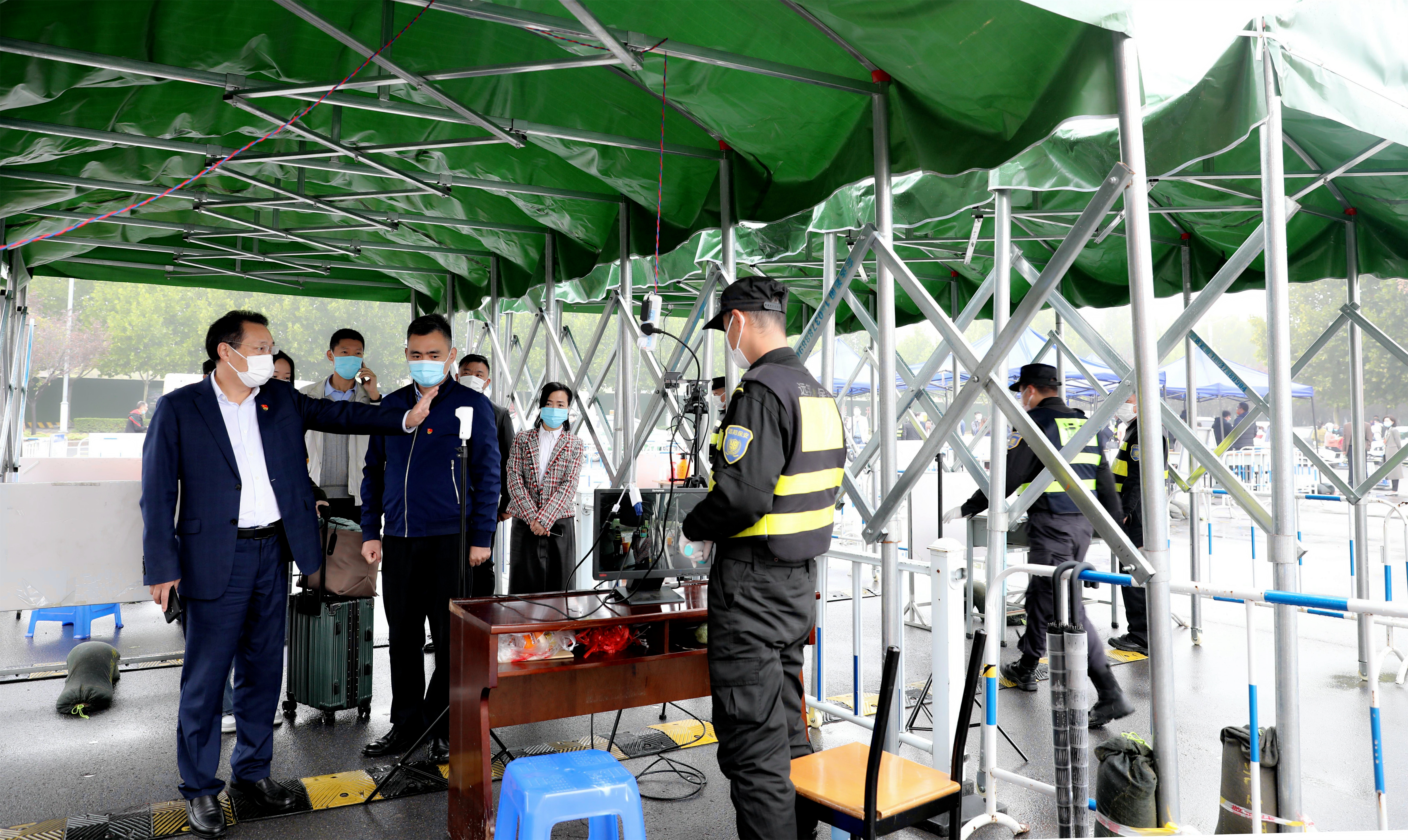 校党委书记付强、副院长王继东先后前往校门入口、核酸检测现场、宿舍、餐厅,重点检查校园环境、安全保障、后勤服务及校门、宿舍、餐厅等重点区域疫情防控措施落实情况,仔细询问了解各学院学生返校情况,看望慰问工作人员和返校学生。