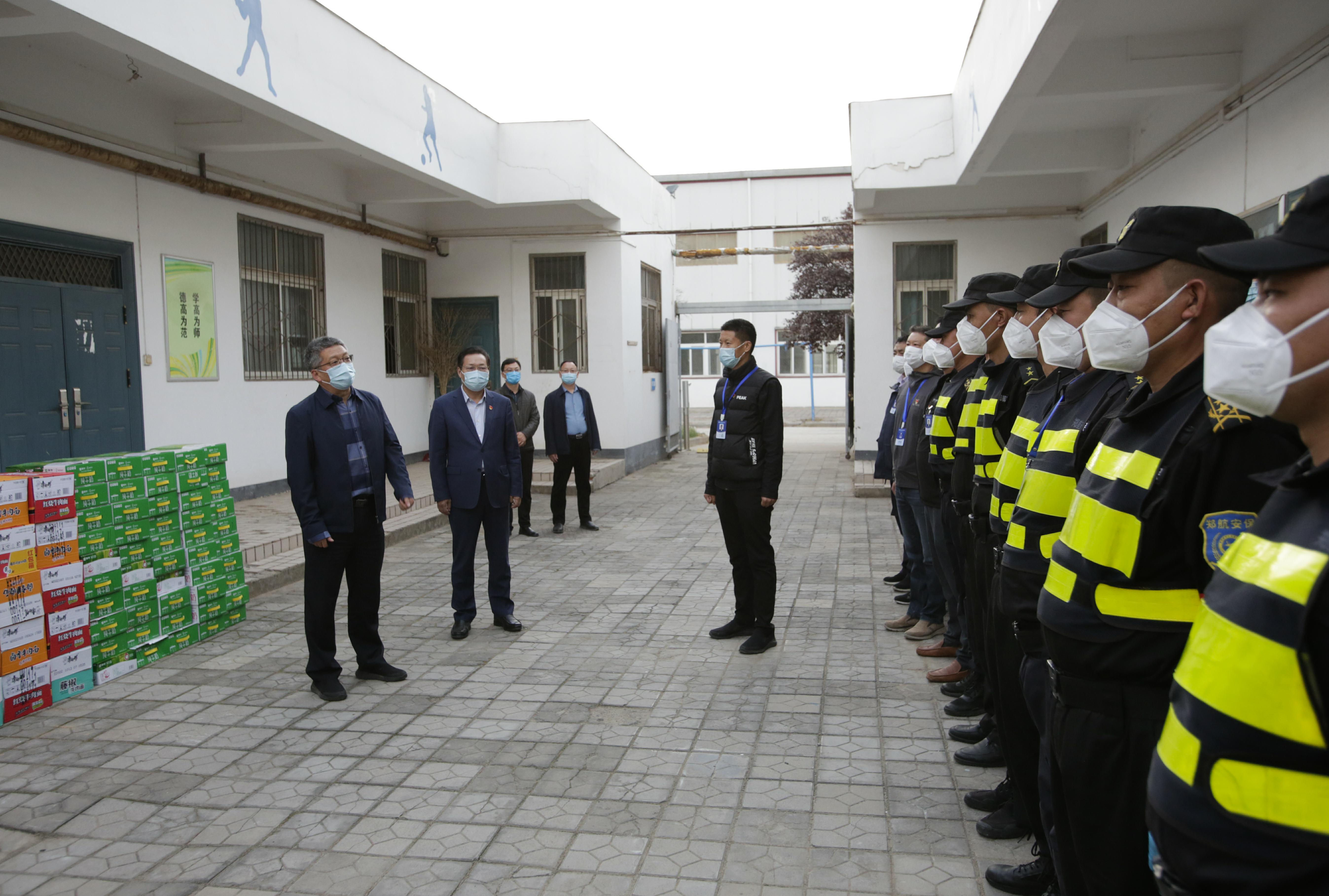 刘代军、王继东一行仔细查看校园大门管控、校区安全稳定各项措施落实落细情况,详细了解值班值守和应急备勤工作人员日常生活状况,看望慰问24小时不间断轮岗执勤一线安保人员;并送去生活慰问物资,对一线工作人员面对疫情不畏惧、不退缩,时刻坚守岗位、日夜奋战,为全校师生健康安全和校园安全稳定辛勤付出表示由衷感谢。
