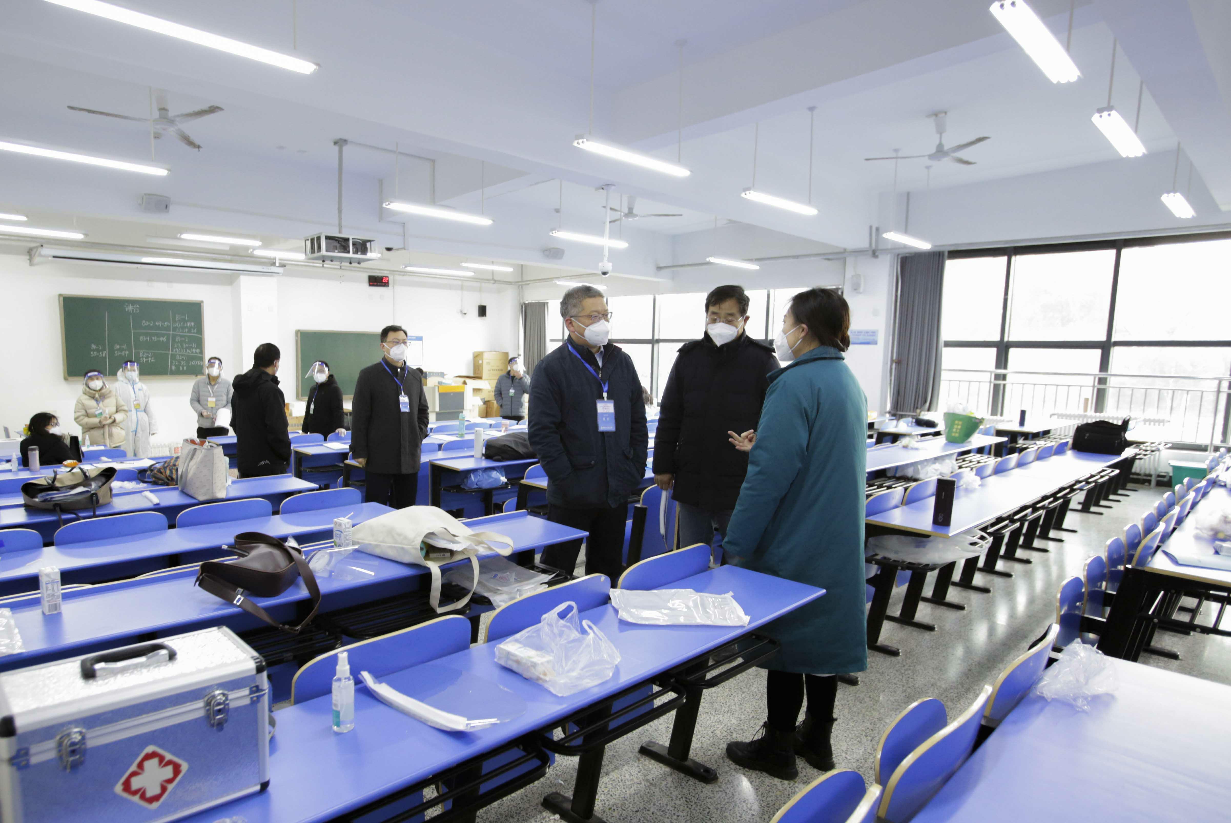 靠前指挥,全力打赢“研招考试”和“疫情防控”两场硬仗。校长刘代军考前听取工作方案汇报,全面检查2023年硕士研究生招生考试准备工作,检查考场布置、考试安排、疫情防控等工作,现场协调解决相关问题,开考后多次去考场实地检查;副校长李捷主持召开多次考点工作推进会,研讨制定和优化考试工作方案,扎实推进工作进程;副校长王继东主持召开多次疫情防控会,专题研讨考试疫情防控工作。学校成立考点工作领导小组,下设8个工作组,持续研判和关注形势变化,从疫情防控、考场布置、监考选拔、监考互派、送考方案、安保及后勤保障等环节不断调整组考方案和预案,规范有效应对各种突发事件,筑牢考试安全和疫情防控两道防线。