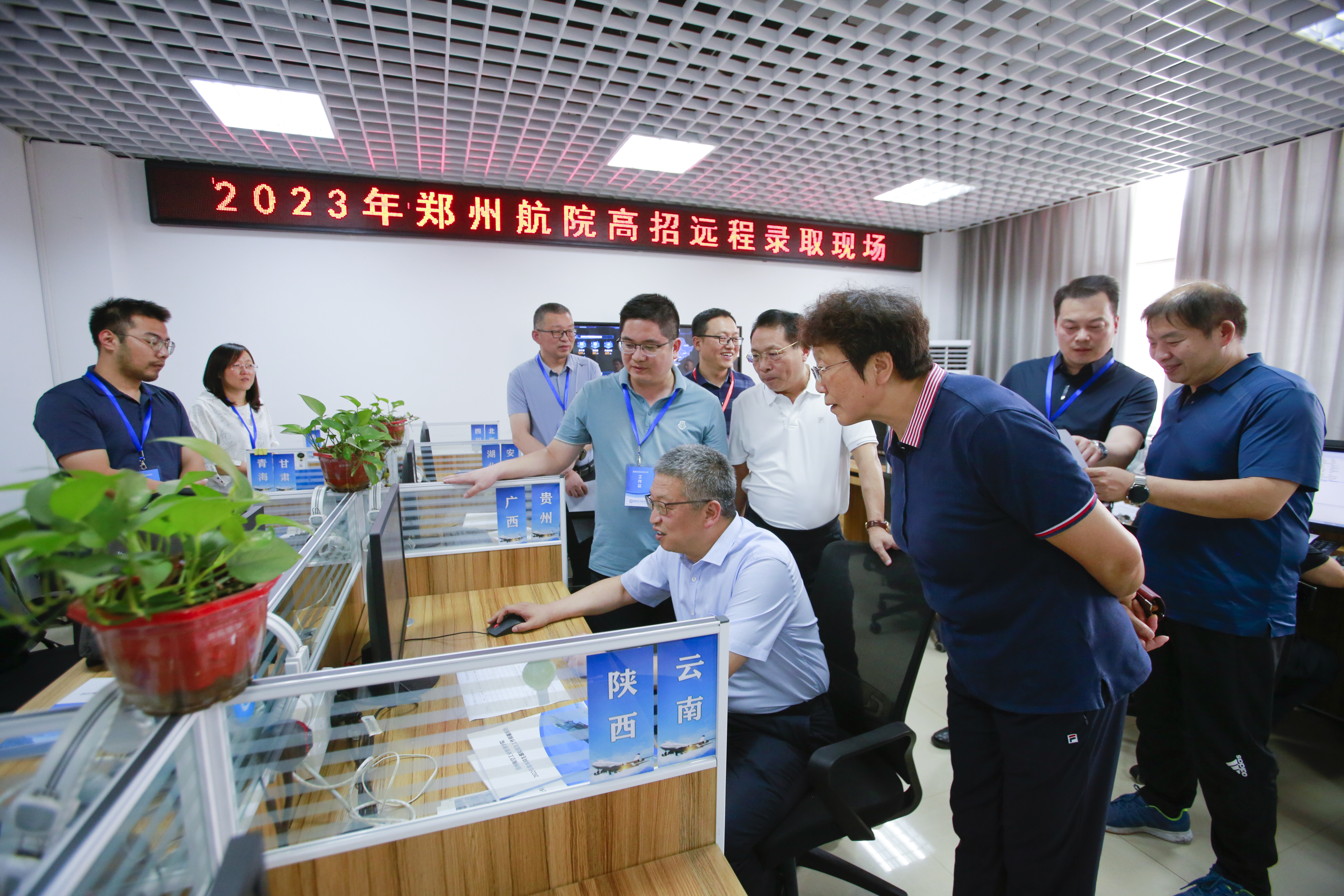 7月19日,河南省高招录取本科一批次投档首日,校长刘代军,校纪委书记、监察专员张文强,副校长王继东、李捷到招生录取现场,检查指导高招录取工作。