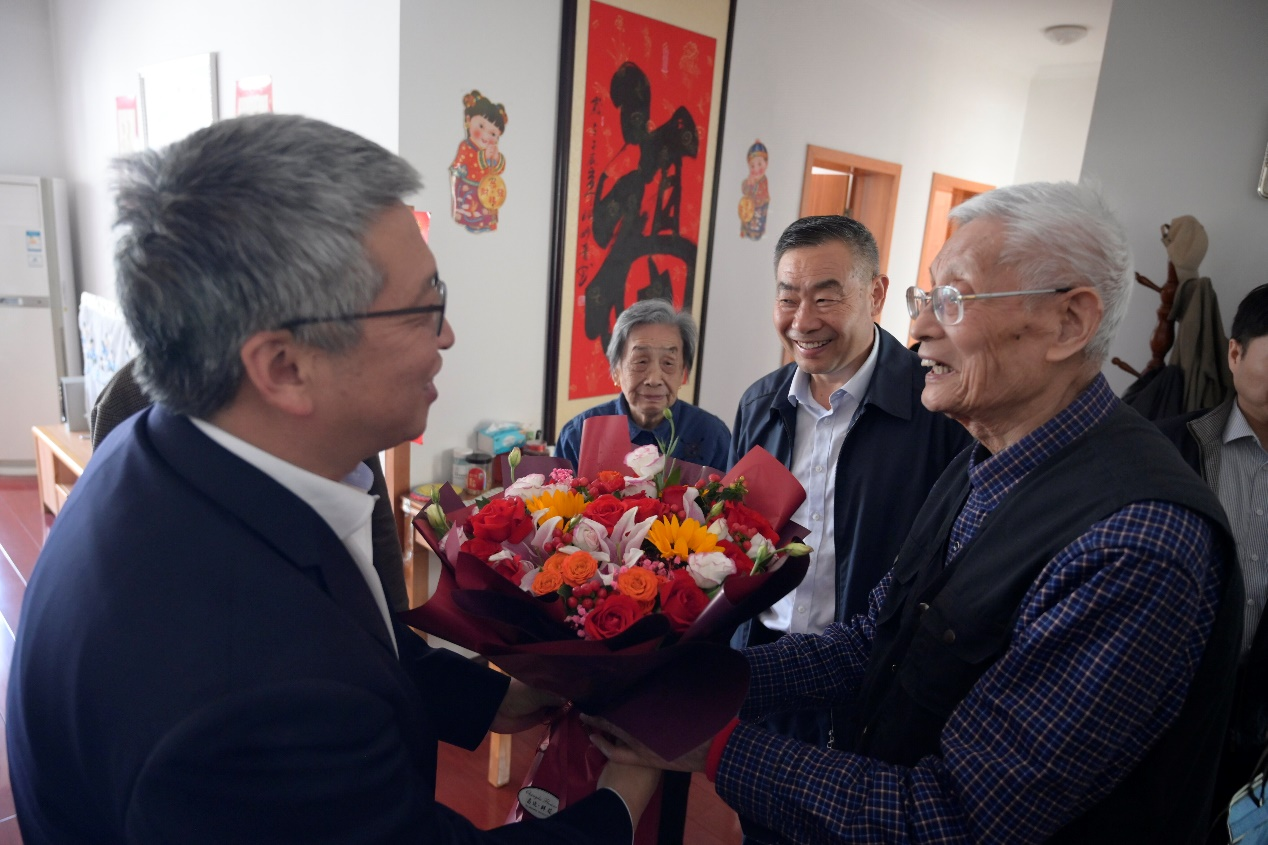 党委办公室、校长办公室、党委宣传部、离退处等部门主要负责人和工作人员陪同慰问。