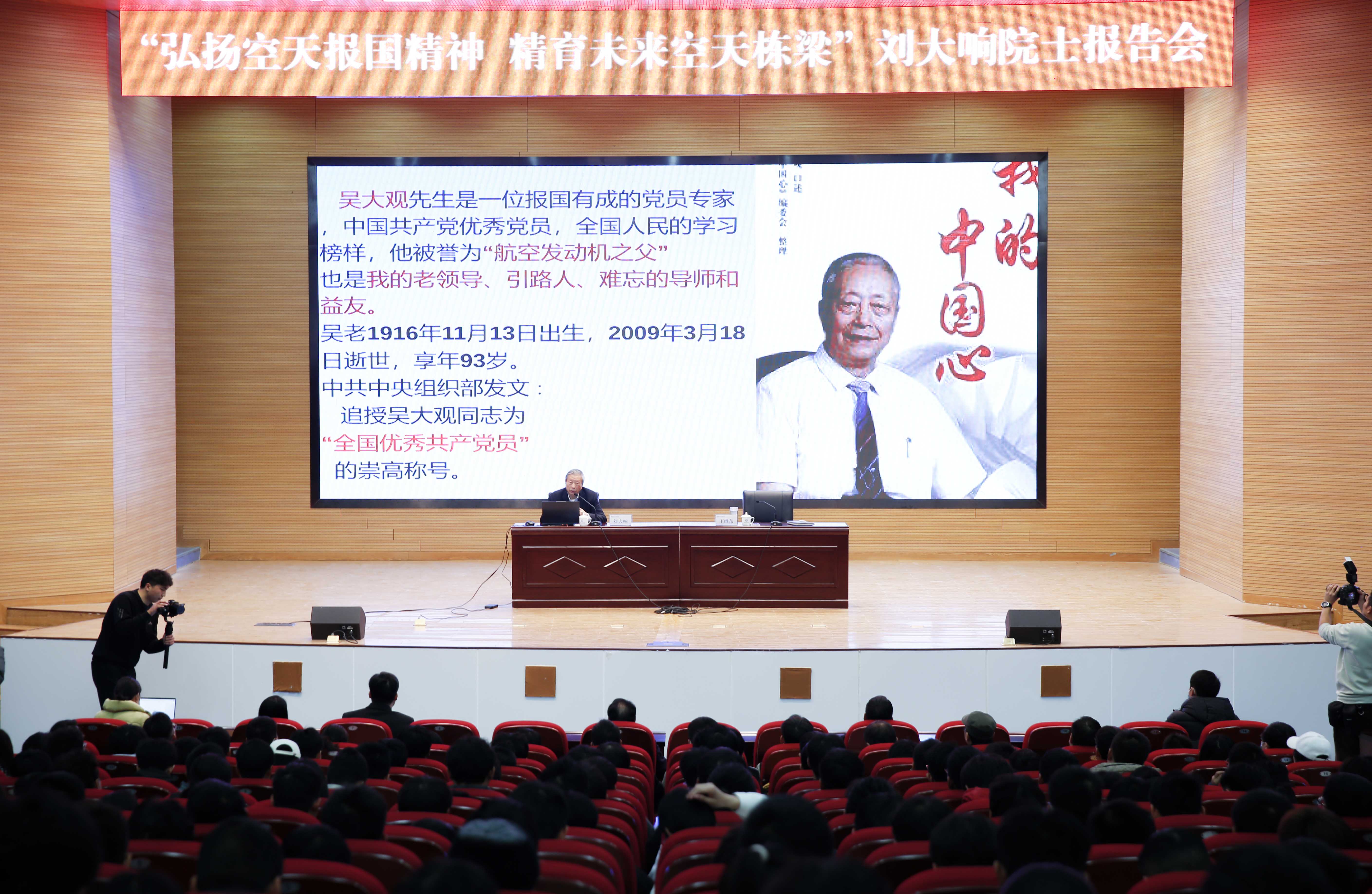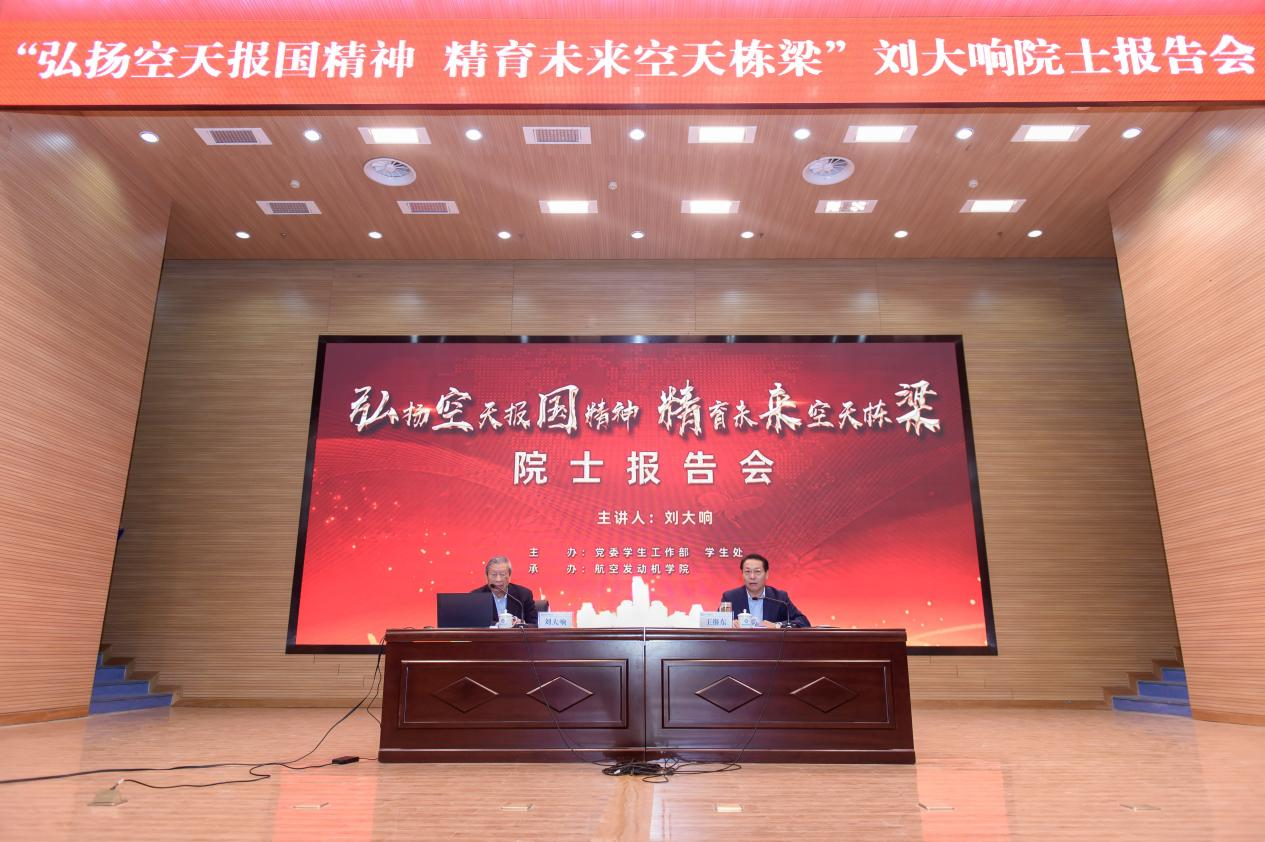 为弘扬“空天报国”精神,激发师生爱党爱国情怀,12月2日,中国工程院院士、航空发动机学院名誉院长、首席科学家刘大响为我校师生作题为《矢志空天报国 精育未来栋梁》的专题报告。副校长王继东主持专题报告会。