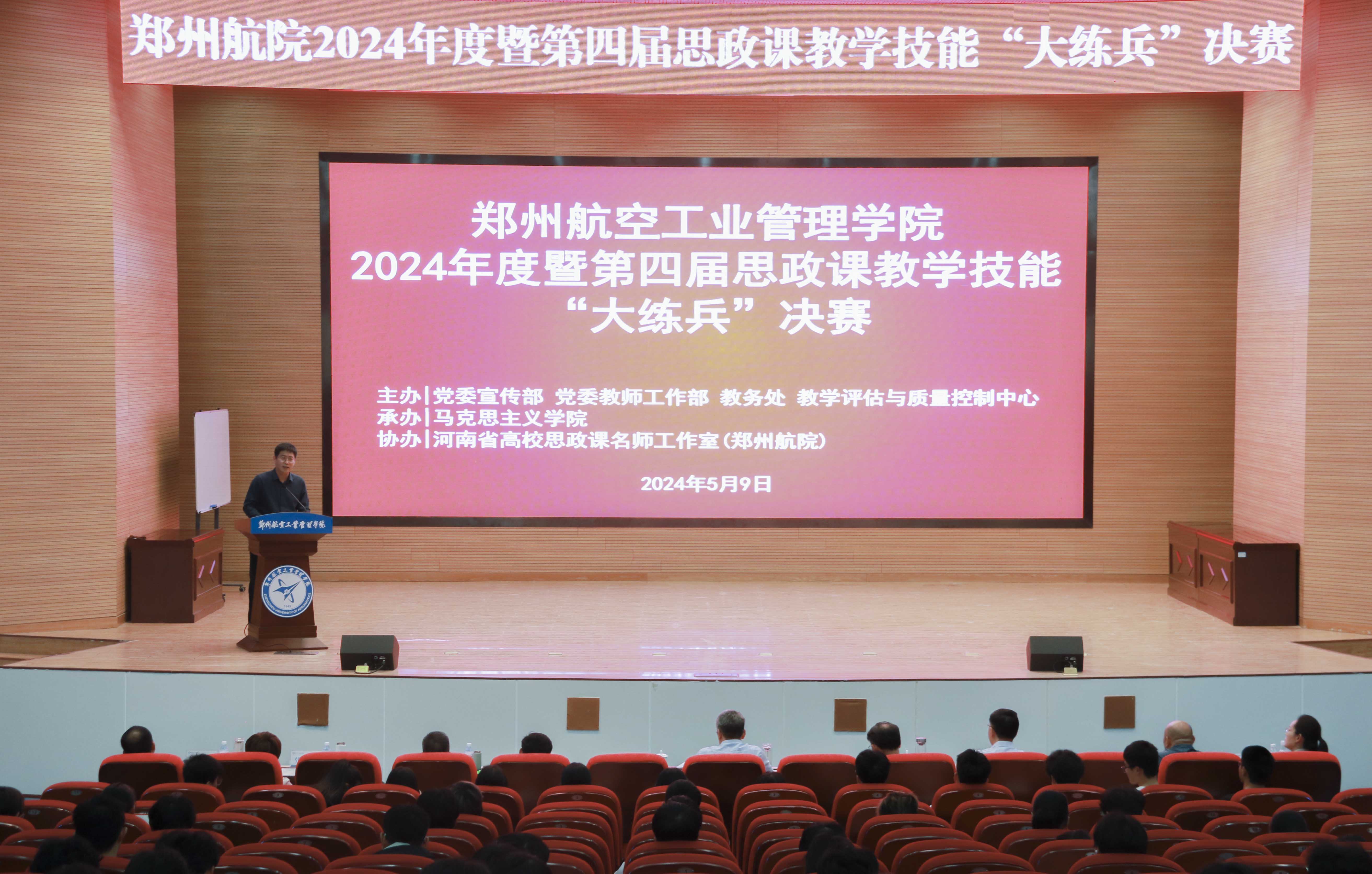 本次比赛由党委宣传部、党委教师工作部、教务处和教学评估与质量控制中心主办,马克思主义学院承办,河南省高校思政课名师工作室(郑州航院)协办。我校专兼职思政课教师及学生代表全程观看比赛。