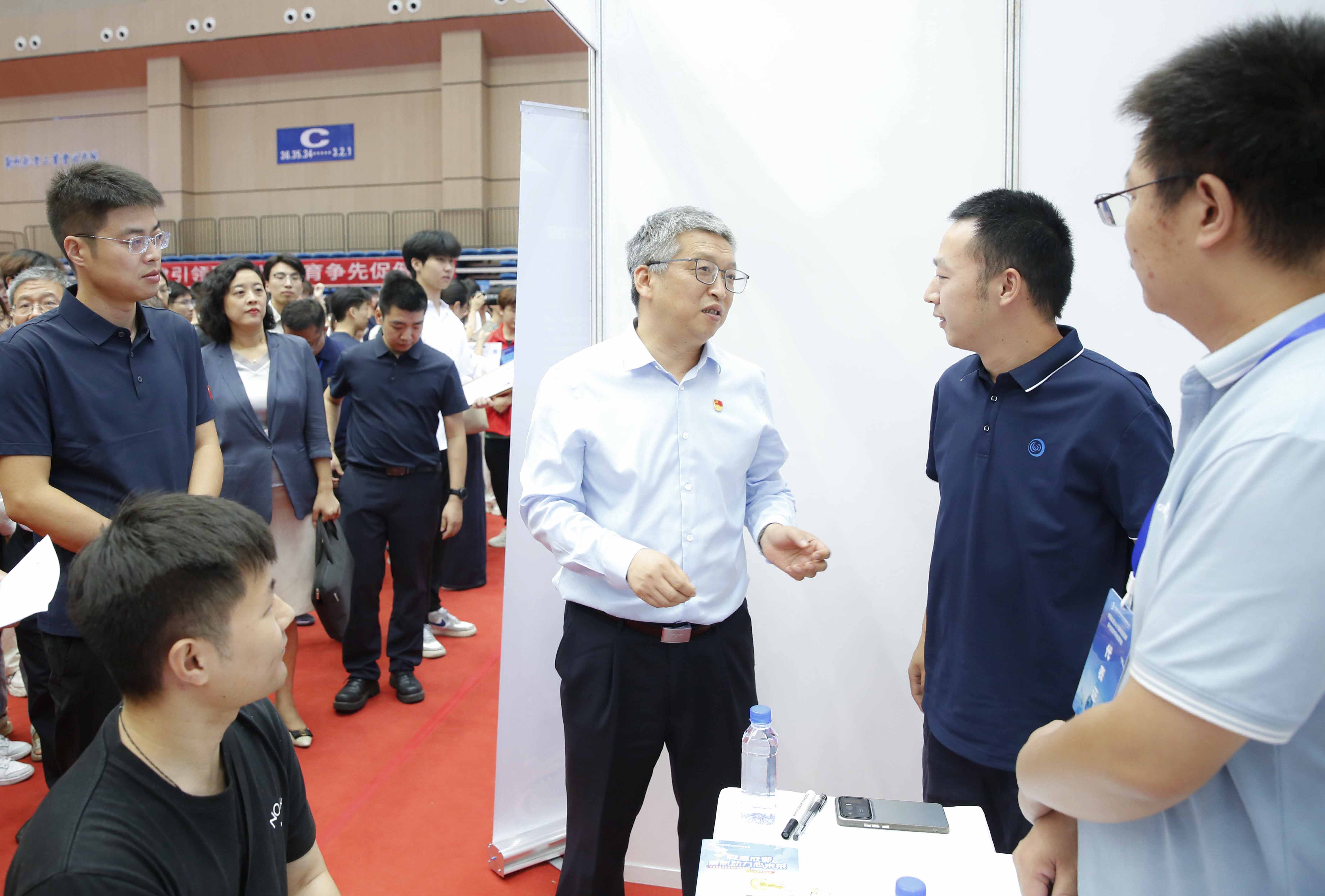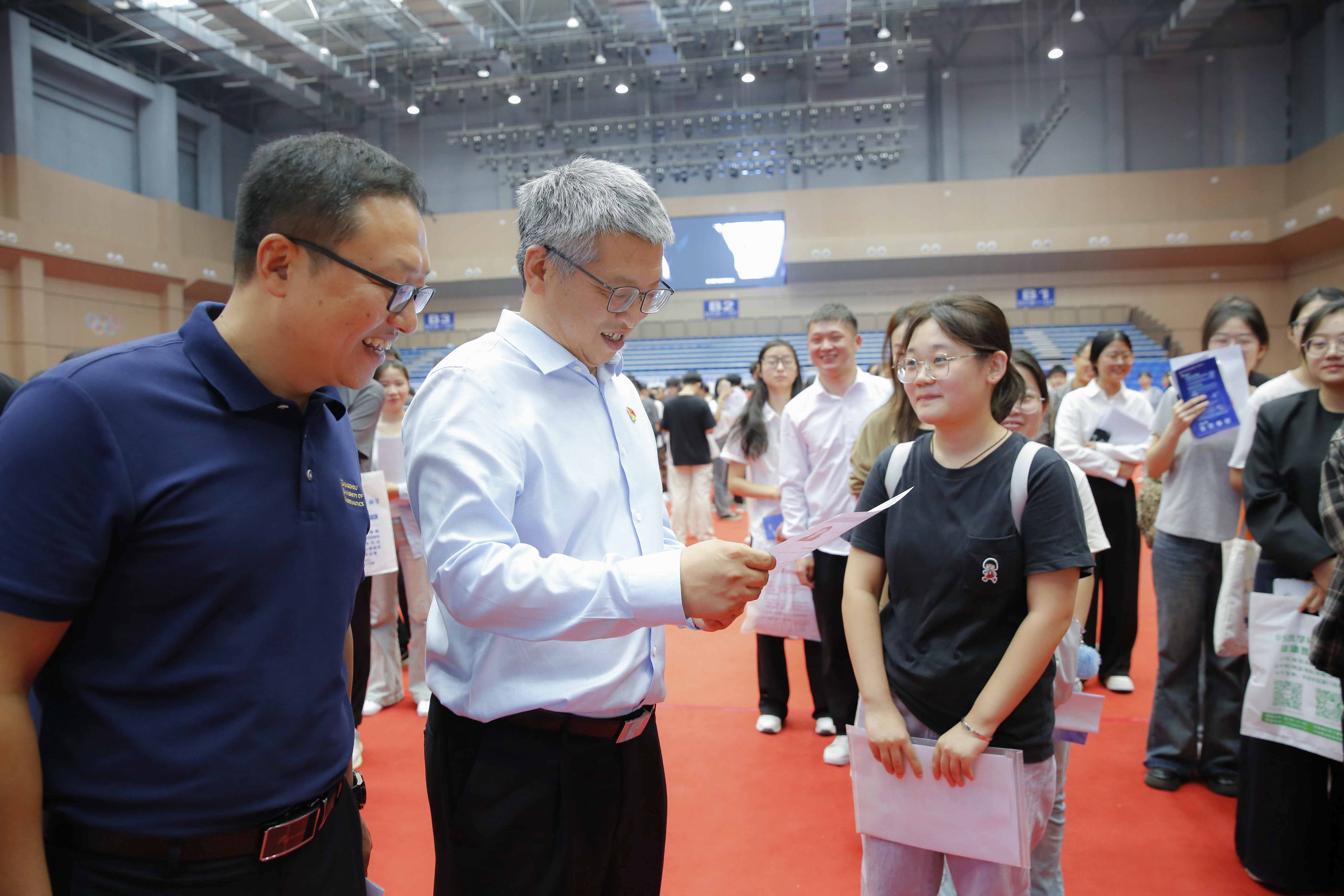 9月29日,中国航空发动机集团有限公司(以下简称“中国航发”)来校举行2025届郑州航院校园专场招聘会,党委书记、校长刘代军深入招聘会现场走访用人单位。