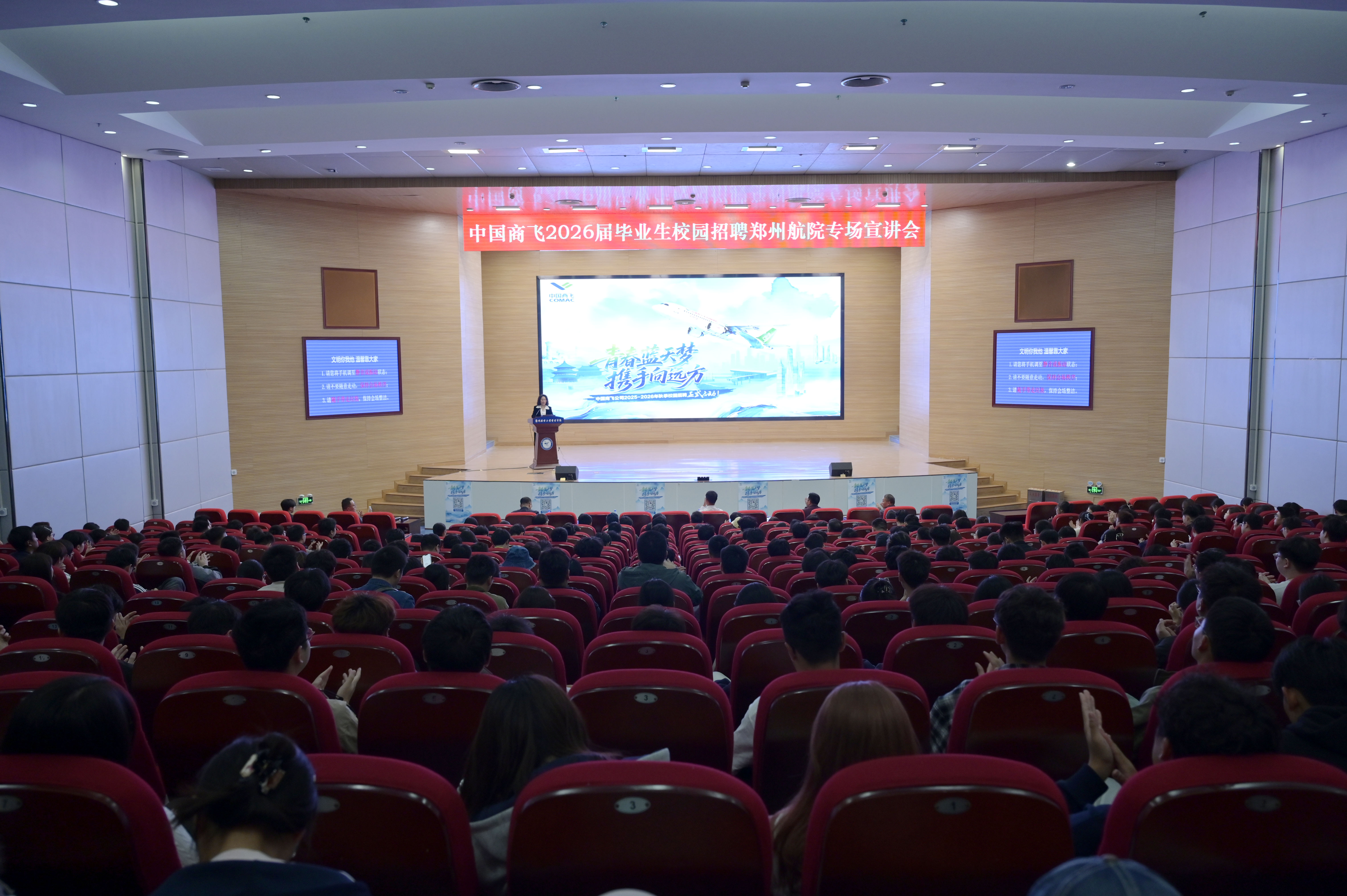 10月14日,中国商用飞机有限责任公司(以下简称“中国商飞”)2026届毕业生校园招聘郑州航院专场招聘宣讲会在我校举行,副校长李玲玲出席并讲话。