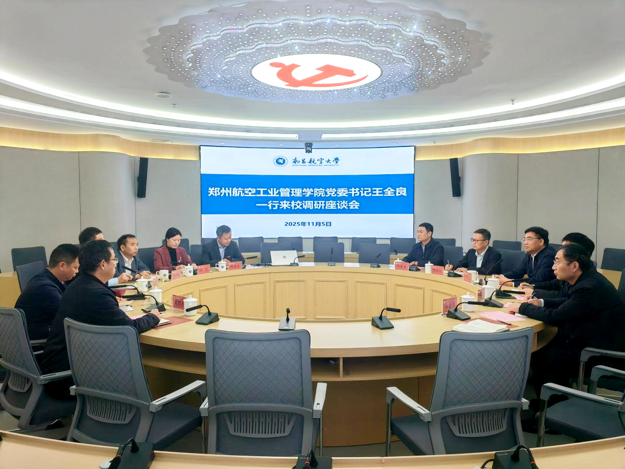 11月5日,校党委书记王全良带队赴南昌航空大学调研,就学科建设、高层次人才队伍建设、特色人才培养等方面进行深入交流。南昌航空大学党委书记李德平,党委副书记、校长卢超,党委常委、副校长周世健会见王全良一行。